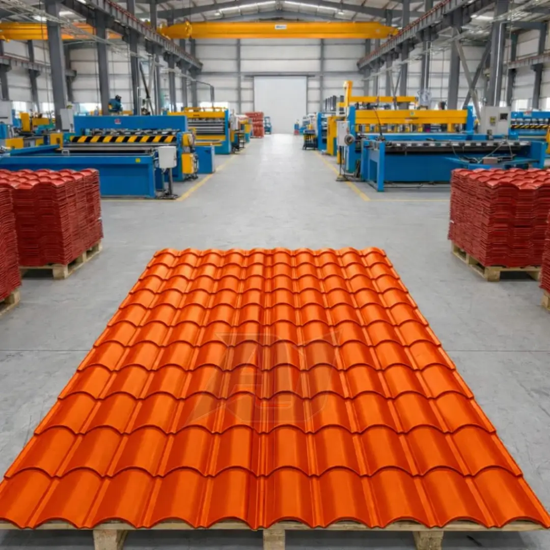 Plancha de acero recubierta con aleación de aluminio y zinc (Aluzinc), conformada en perfil tipo teja andina mediante proceso de laminado en frío.