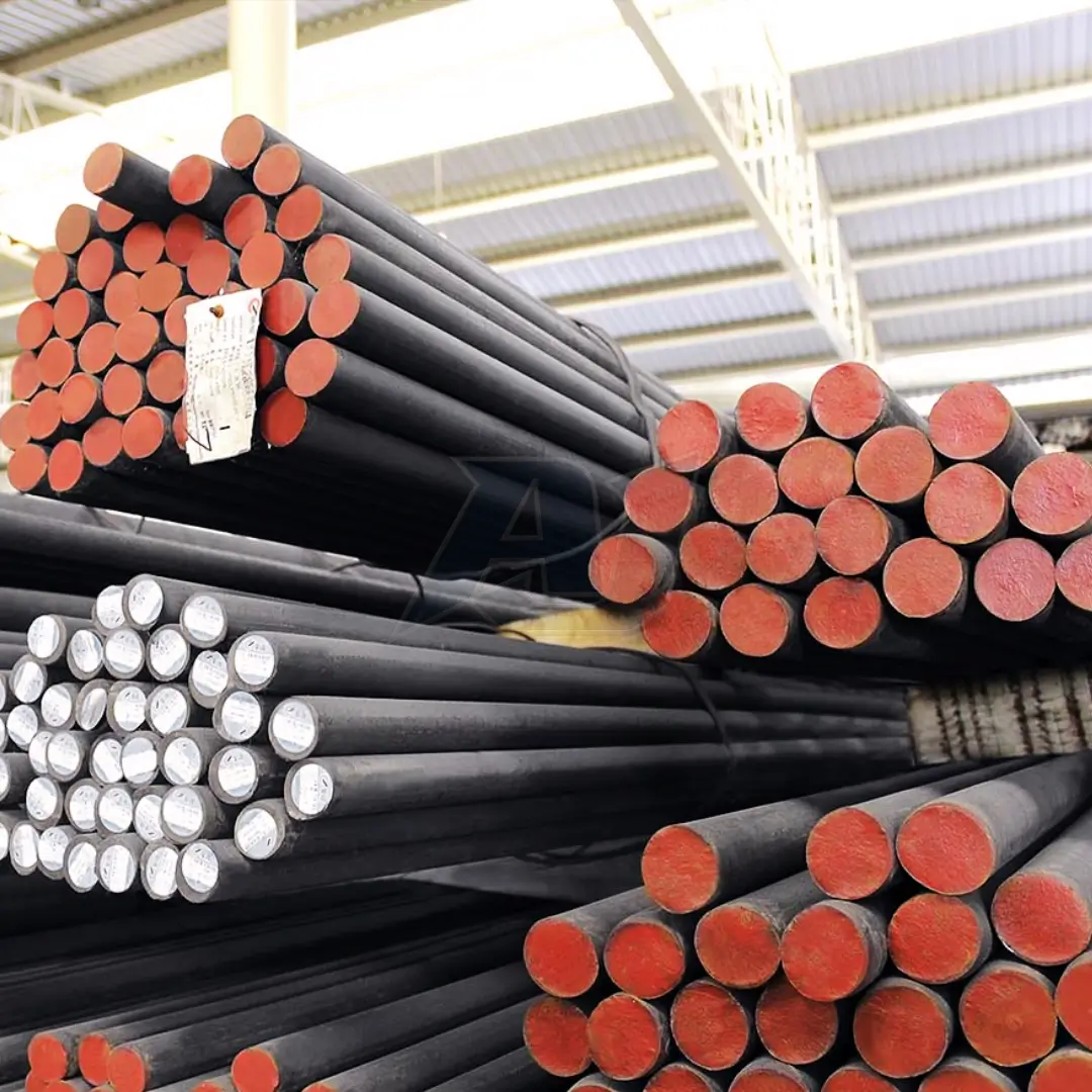 Acero medio carbono SAE 1045, fabricado mediante laminación en caliente, en sección redonda maciza de superficie lisa.